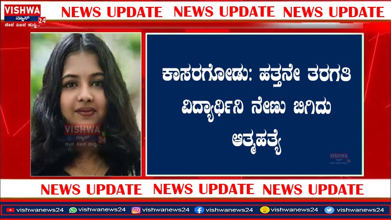 ಕಾಸರಗೋಡು: ಹತ್ತನೇ ತರಗತಿ ವಿದ್ಯಾರ್ಥಿನಿ ನೇಣು ಬಿಗಿದು ಆತ್ಮಹತ್ಯೆ – vishwanews24