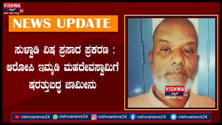 ಸುಳ್ವಾಡಿ ವಿಷ ಪ್ರಸಾದ ಪ್ರಕರಣ : ಎ1 ಆರೋಪಿ ಇಮ್ಮಡಿ ಮಹದೇವಸ್ವಾಮಿಗೆ ಷರತ್ತುಬದ್ಧ ಜಾಮೀನು – vishwanews24