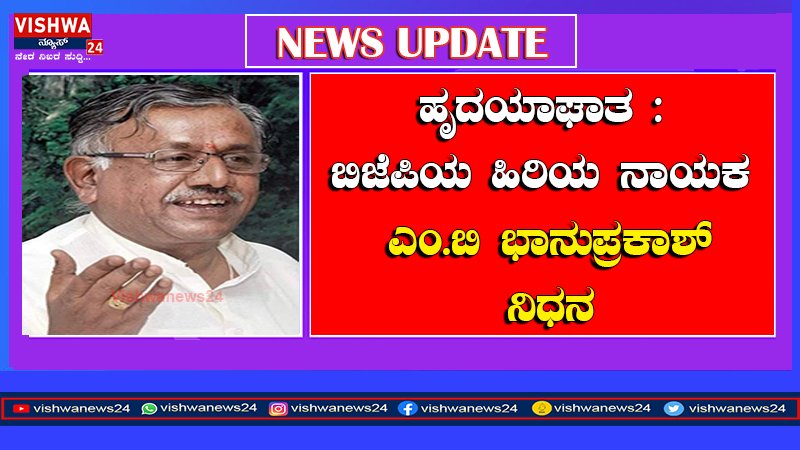 ಹೃದಯಾಘಾತ : ಬಿಜೆಪಿ ಹಿರಿಯ ನಾಯಕ ಎಂ ಬಿ ಭಾನುಪ್ರಕಾಶ್ ನಿಧನ – vishwanews24