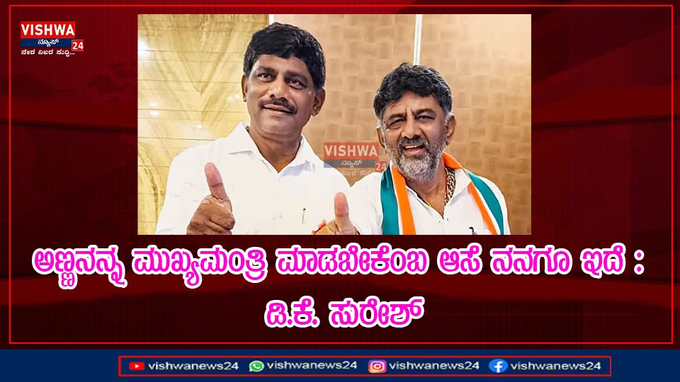 ಅಣ್ಣನನ್ನ ಮುಖ್ಯಮಂತ್ರಿ ಮಾಡಬೇಕೆಂಬ ಆಸೆ ನನಗೂ ಇದೆ : ಡಿ.ಕೆ. ಸುರೇಶ್ – vishwanews24