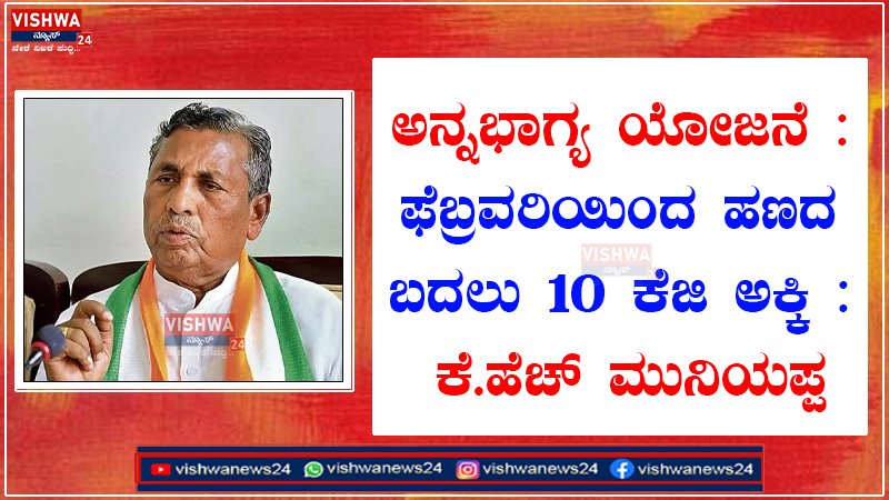 ಅನ್ನಭಾಗ್ಯ ಯೋಜನೆ : ಫೆಬ್ರವರಿಯಿಂದ ಹಣದ ಬದಲು 10 ಕೆಜಿ ಅಕ್ಕಿ : ಕೆ.ಹೆಚ್ ಮುನಿಯಪ್ಪ