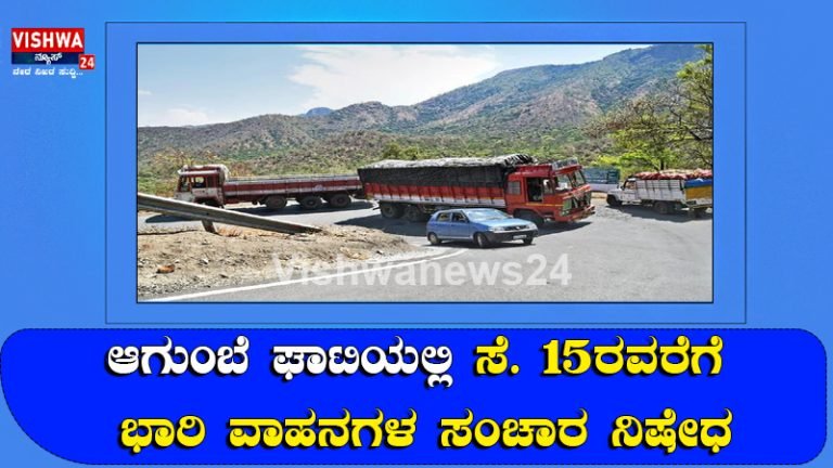 ಆಗುಂಬೆ ಘಾಟಿಯಲ್ಲಿ ಸೆ. 15ರವರೆಗೆ ಭಾರಿ ವಾಹನಗಳ ಸಂಚಾರ ನಿಷೇಧ – vishwanews24