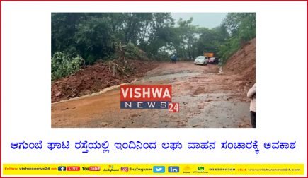 ಆಗುಂಬೆ ಘಾಟಿ ರಸ್ತೆಯಲ್ಲಿ ಇಂದಿನಿಂದ ಲಘು ವಾಹನ ಸಂಚಾರಕ್ಕೆ ಅವಕಾಶ – Vishwanews24