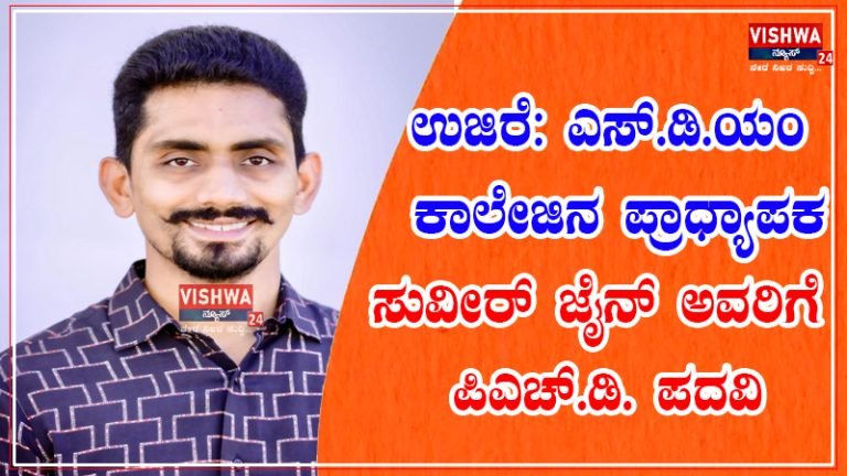 ಉಜಿರೆಯ ಎಸ್.ಡಿ.ಯಂ ಮಹಾವಿದ್ಯಾಲಯದಲ್ಲಿರುವ ಹಂಪಿ ಕನ್ನಡ ವಿಶ್ವವಿದ್ಯಾಲಯದಿಂದ ಮಾನ್ಯತೆ ಪಡೆದ ಡಾ| ಹಾಮಾನಾ ಸಂಶೋಧನಾ ಕೇಂದ್ರದ ಅಭ್ಯರ್ಥಿ ಸುವೀರ್ ಜೈನ್ ಅವರಿಗೆ ಪಿಎಚ್.ಡಿ ಪದವಿ ದೊರೆತಿದೆ.