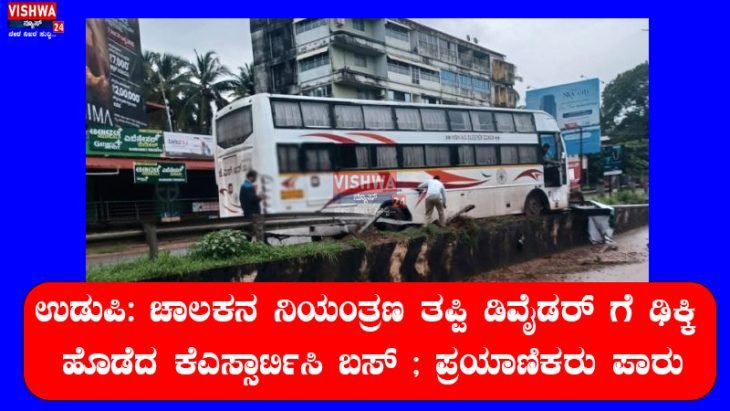 ಉಡುಪಿ:ಚಾಲಕನ ನಿಯಂತ್ರಣ ತಪ್ಪಿ  ಡಿವೈಡರ್ ಗೆ ಢಿಕ್ಕಿ ಹೊಡೆದ  ಕೆಎಸ್ಸಾರ್ಟಿಸಿ ಬಸ್ ; ಪ್ರಯಾಣಿಕರು ಪಾರು – vishwanews24