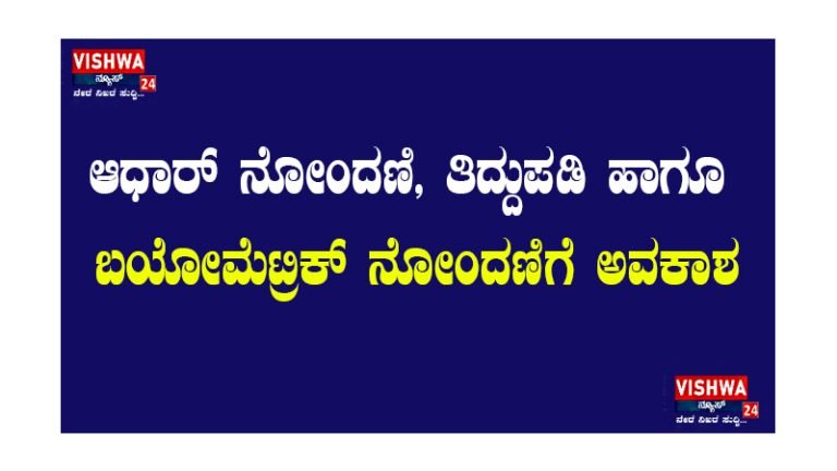 ಉಡುಪಿ:  ಆಧಾರ್ ನೋಂದಣಿ, ತಿದ್ದುಪಡಿ ಹಾಗೂ ಬಯೋಮೆಟ್ರಿಕ್ ನೋಂದಣಿಗೆ ಅವಕಾಶ – vishwanews24