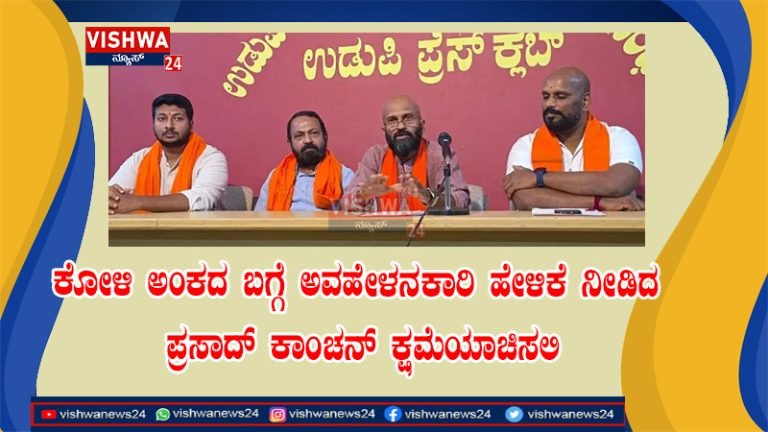 ಉಡುಪಿ: ತುಳುನಾಡಿನ ದೈವಾರಾಧನೆಯ ಭಾಗವಾದ ಕೋಳಿ ಅಂಕದ ಆಚರಣೆ ಬಗ್ಗೆ ಕಾಂಗ್ರೆಸ್ ಮುಖಂಡ ಪ್ರಸಾದ್ ಕಾಂಚನ್ ಅವಹೇಳನಕಾರಿ ಹೇಳಿಕೆಯಿಂದ ತುಳುನಾಡಿನ ಧಾರ್ಮಿಕ ಭಾವನೆಗೆ ಧಕ್ಕೆ ತಂದ ಬಗ್ಗೆ ಬಹಿರಂಗ ಕ್ಷಮೆ ಯಾಚನೆಗೆ ಉಡುಪಿ ಜಿಲ್ಲಾ ತುಳುನಾಡ ಧರ್ಮ ಜಾಗರಣ ವೇದಿಕೆ ಆಗ್ರಹಿಸಿದೆ.
