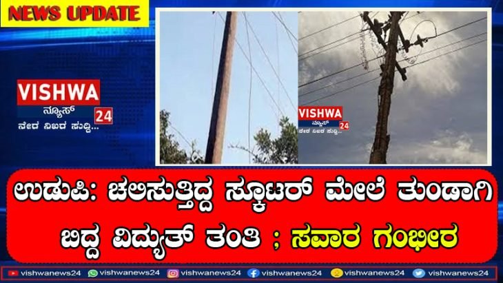 ಉಡುಪಿ: ಚಲಿಸುತ್ತಿದ್ದ ಸ್ಕೂಟರ್ ಮೇಲೆ ತುಂಡಾಗಿ ಬಿದ್ದ ವಿದ್ಯುತ್ ತಂತಿ ; ಸವಾರ ಗಂಭೀರ , ಪತ್ನಿ ಹಾಗೂ ಮಗು ಅಪಾಯದಿಂದ ಪಾರು – vishwanews24