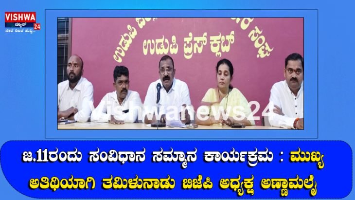 ಜ.11ರಂದು ಸಂವಿಧಾನ ಸಮ್ಮಾನ ಕಾರ್ಯಕ್ರಮ: ಮುಖ್ಯ ಅತಿಥಿಯಾಗಿ ತಮಿಳುನಾಡು ಬಿಜೆಪಿ ಅಧ್ಯಕ್ಷ ಅಣ್ಣಾಮಲೈ ಉಡುಪಿಗೆ – vishwanews24
