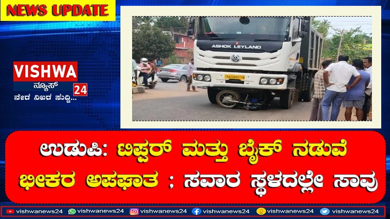 ಉಡುಪಿ: ಟಿಪ್ಪರ್ ಮತ್ತು ಬೈಕ್ ನಡುವೆ ಭೀಕರ ಅಪಘಾತ ; ಸವಾರ ಸ್ಥಳದಲ್ಲೇ ಸಾವು – Vishwanews24
