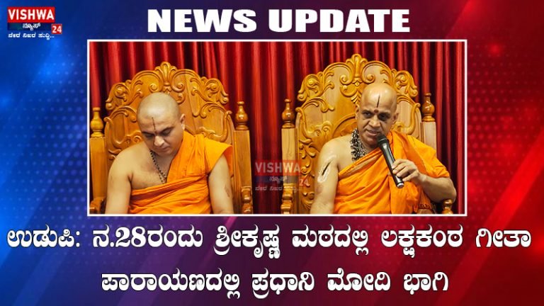 ಉಡುಪಿ: ನ.28ರಂದು ಶ್ರೀಕೃಷ್ಣ ಮಠದಲ್ಲಿ ಲಕ್ಷಕಂಠ ಗೀತಾ ಪಾರಾಯಣದಲ್ಲಿ ಪ್ರಧಾನಿ ಮೋದಿ ಭಾಗಿ – vishwanews24