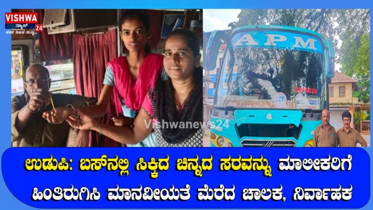 ಉಡುಪಿ: ಸಿಟಿ ಬಸ್ ನಲ್ಲಿ ಕಳೆದುಕೊಂಡಿದ್ದ ಚಿನ್ನದ ಸರವನ್ನು ಬಸ್ ಚಾಲಕ ಮತ್ತು ಕಂಡೆಕ್ಟರ್ ಸರದ ಮಾಲೀಕರಿಗೆ ಹಿಂತಿರುಗಿಸಿದ ಅಪರೂಪದ ಘಟನೆಯೊಂದು ಉಡುಪಿಯಲ್ಲಿ ನಡೆದಿದೆ. ಮಾನವೀಯತೆ ಕೂಡ ಇದೆ ಎಂಬುದಕ್ಕೆ ಇಲ್ಲೊಂದು ಘಟನೆ ಸಾಕ್ಷಿಯಾಗಿದೆ.