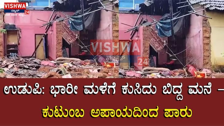 ಉಡುಪಿ: ಭಾರೀ ಮಳೆಗೆ ಕುಸಿದು ಬಿದ್ದ ಮನೆ ; ಕುಟುಂಬ ಅಪಾಯದಿಂದ ಪಾರು – vishwanews24