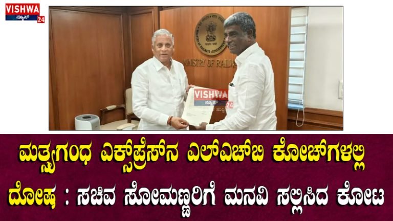 ಉಡುಪಿ : ಮತ್ಸ್ಯಗಂಧ ಎಕ್ಸ್‌ಪ್ರೆಸ್‌ನ ಎಲ್‌ಎಚ್‌ಬಿ ಕೋಚ್‌ಗಳಲ್ಲಿ ದೋಷ ; ಕೂಡಲೇ ಸರಿಪಡಿಸುವಂತೆ ಸಚಿವ ಸೋಮಣ್ಣರಿಗೆ ಕೋಟ ಮನವಿ  – vishwanews24