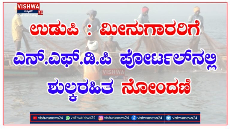 ನ್ಯಾಶನಲ್ ಫಿಶರೀಸ್ ಡಿಜಿಟಲ್ ಪ್ಲಾಟ್ ಫಾರ್ಮ್ (ಓಈಆP) ಪೋರ್ಟಲ್ ನಲ್ಲಿ ನೋಂದಾಯಿಸಲು ಹೆಚ್ಚುವರಿ ಶುಲ್ಕ ವಿಧಿಸುವ/ ವಿಧಿಸಿರುವ/ ವಿಧಿಸುತ್ತಿರುವ ಮೀನುಗಾರಿಕೆ ಸಹಕಾರಿ ಸಂಘಗಳು ಹಾಗೂ ಸಾಮಾನ್ಯ ಸೇವಾ ಕೇಂದ್ರಗಳ ಮೇಲೆ ಉಡುಪಿ, ಕುಂದಾಪುರ ಮತ್ತು ಕಾರ್ಕಳ ಮೀನುಗಾರಿಕೆ ಸಹಾಯಕ ನಿರ್ದೇಶಕರುಗಳ ಕಾನೂನು ಕ್ರಮ ಜರುಗಿಸುವಂತೆ ಮೀನುಗಾರಿಕೆ ಇಲಾಖೆಯ ಉಪನಿರ್ದೇಶಕರ ಕಚೇರಿ ಪ್ರಕಟಣೆ ತಿಳಿಸಿದೆ.