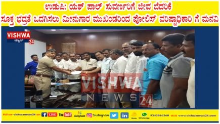 Share this on WhatsAppಉಡುಪಿ: ಯಶ್ ಪಾಲ್ ಸುವರ್ಣರಿಗೆ ಜೀವ ಬೆದರಿಕೆ – ಸೂಕ್ತ ಭದ್ರತೆ ಒದಗಿಸಲು ಮೀನುಗಾರ ಮುಖಂಡರಿಂದ ಪೋಲಿಸ್ ವರಿಷ್ಟಾಧಿಕಾರಿ ಗೆ ಮನವಿ ಉಡುಪಿ : ಧಾರ್ಮಿಕ, ಸಾಮಾಜಿಕ, ಸಹಕಾರಿ, ರಾಜಕೀಯ ಮುಖಂಡರಾಗಿ ಗುರುತಿಸಿಕೊಂಡಿರುವ ಯಶಪಾಲ್ ಸುವರ್ಣ ರಿಗೆ … Continue reading ಉಡುಪಿ: ಯಶ್ ಪಾಲ್ ಸುವರ್ಣರಿಗೆ ಜೀವ ಬೆದರಿಕೆ – ಸೂಕ್ತ ಭದ್ರತೆ ಒದಗಿಸಲು ಮೀನುಗಾರ ಮುಖಂಡರಿಂದ ಪೋಲಿಸ್ ವರಿಷ್ಟಾಧಿಕಾರಿ ಗೆ ಮನವಿ – VIshwnaews24