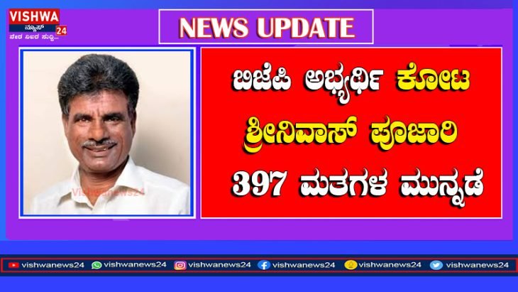 ಉಡುಪಿ: ಲೋಕಸಭೆ ಚುನಾವಣೆ ಮತ ಎಣಿಕೆ ಆರಂಭ: ಬಿಜೆಪಿ ಅಭ್ಯರ್ಥಿ ಕೋಟ ಶ್ರೀನಿವಾಸ್ ಪೂಜಾರಿ 397 ಮತಗಳ ಮುನ್ನಡೆ – vishwanews24 June 4, 2024June 4, 2024 Vishwa News 24 Featured, ಉಡುಪಿ Share this on WhatsAppಉಡುಪಿ: ಲೋಕಸಭೆ ಚುನಾವಣೆ ಮತ ಎಣಿಕೆ ಆರಂಭ: ಬಿಜೆಪಿ ಅಭ್ಯರ್ಥಿ ಕೋಟ ಶ್ರೀನಿವಾಸ್ ಪೂಜಾರಿ 397 ಮತಗಳ ಮುನ್ನಡೆ