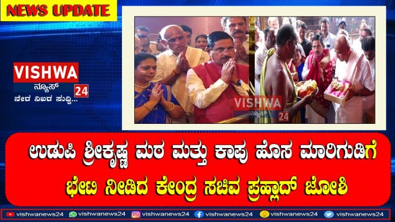 ಉಡುಪಿ: ಜಿಲ್ಲೆಯ ಕಾಪು ಹೊಸ ಮಾರಿಗುಡಿ ಮತ್ತು ಉಡುಪಿಯ ಶ್ರೀಕೃಷ್ಣಮಠಕ್ಕೆ ಇವತ್ತು ಕೇಂದ್ರ ಸಚಿವ ಪ್ರಹ್ಲಾದ್ ಜೋಶಿ ಭೇಟಿ ನೀಡಿದರು. ಕುಟುಂಬ ಸಮೇತ ಆಗಮಿಸಿದ ಜೋಶಿ ಎರಡೂ ಕಡೆ ದೇವರ ದರ್ಶನ ಮಾಡಿದರು.