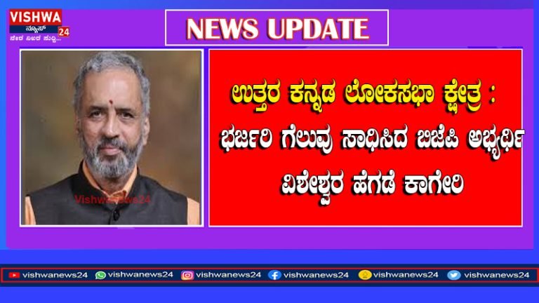 Share this on WhatsAppಉತ್ತರ ಕನ್ನಡ ಲೋಕಸಭಾ ಕ್ಷೇತ್ರ : ಭರ್ಜರಿ ಗೆಲುವು ಸಾಧಿಸಿದ ಬಿಜೆಪಿ ಅಭ್ಯರ್ಥಿ ಬಿಜೆಪಿ ಅಭ್ಯರ್ಥಿ ವಿಶ್ವೇಶ್ವರ ಹೆಗಡೆ ಕಾಗೇರಿ ಬೆಳಗಾವಿ ಲೋಕಸಭಾ ಚುನಾವಣೆ : ಭರ್ಜರಿ ಜಯಭೇರಿ ಬಾರಿಸಿದ ಬಿಜೆಪಿ ಅಭ್ಯರ್ಥಿ ಜಗದೀಶ್ ಶೆಟ್ಟರ್ – … Continue reading ಉತ್ತರ ಕನ್ನಡ ಲೋಕಸಭಾ ಕ್ಷೇತ್ರ : ಭರ್ಜರಿ ಗೆಲುವು ಸಾಧಿಸಿದ ಬಿಜೆಪಿ ಅಭ್ಯರ್ಥಿ ವಿಶ್ವೇಶ್ವರ ಹೆಗಡೆ ಕಾಗೇರಿ – vishwanews24