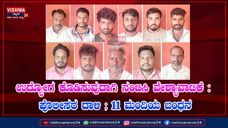ಉದ್ಯೋಗ ಕೊಡಿಸುವುದಾಗಿ ನಂಬಿಸಿ ವೇಶ್ಯಾವಾಟಿಕೆ : ಪೊಲೀಸರ ದಾಳಿ ; 11 ಮಂದಿಯ ಬಂಧನ – vishwanews24