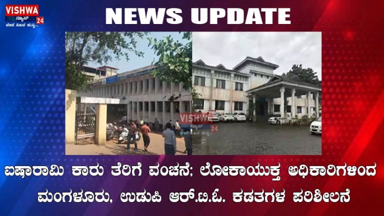 Share this on WhatsAppಐಷಾರಾಮಿ ಕಾರು ತೆರಿಗೆ ವಂಚನೆ; ಲೋಕಾಯುಕ್ತ ಅಧಿಕಾರಿಗಳಿಂದ ಮಂಗಳೂರು, ಉಡುಪಿ ಆರ್.ಟಿ.ಓ. ಕಡತಗಳ ಪರಿಶೀಲನೆ ಮಂಗಳೂರು/ಉಡುಪಿ : ಐಷಾರಾಮಿ ಕಾರು ನೋಂದಣಿಯ ವೇಳೆ ತೆರಿಗೆ ವಂಚನೆಗೆ ಸಂಬಂಧಿಸಿದ ಪ್ರಕರಣದಲ್ಲಿ, ಲೋಕಾಯುಕ್ತ ಅಧಿಕಾರಿಗಳು ಮಂಗಳೂರು ಮತ್ತು ಉಡುಪಿ ಆರ್.ಟಿ.ಓ … Continue reading ಐಷಾರಾಮಿ ಕಾರು ತೆರಿಗೆ ವಂಚನೆ; ಲೋಕಾಯುಕ್ತ ಅಧಿಕಾರಿಗಳಿಂದ ಮಂಗಳೂರು, ಉಡುಪಿ ಆರ್.ಟಿ.ಓ. ಕಡತಗಳ ಪರಿಶೀಲನೆ – vishwanews24