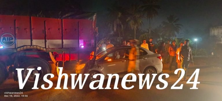 ಟೈಯರ್ ಪಂಚರ್ ಗೊಂಡು ನಿಂತಿದ್ದ ಲಾರಿಗೆ ಹಿಂಬದಿಯಿಂದ ಕಾರು ಡಿಕ್ಕಿ ಹೊಡೆದ ಘಟನೆ ನಡೆದಿದೆ.