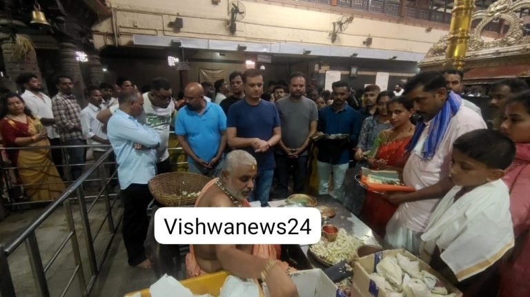 ಮಂಗಳೂರು: ಕರಾವಳಿಯ ಪ್ರಸಿದ್ಧ ಕಟೀಲು ಶ್ರೀ ದುರ್ಗಾಪರಮೇಶ್ವರಿ ದೇವಾಲಯಕ್ಕೆ ಕಾಂತಾರ ಚಿತ್ರದ ನಿರ್ಮಾಪಕ ವಿಜಯ್ ಕಿರಗಂದೂರು ಅವರು ಭೇಟಿ ನೀಡಿದರು.