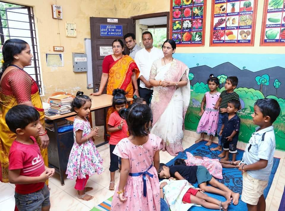 ಕಡಿಯಾಳಿಯ ಅಂಗನವಾಡಿ ಕೇಂದ್ರಕ್ಕೆ ಸಚಿವೆ ಲಕ್ಷ್ಮೀ ಹೆಬ್ಬಾಳಕರ್ ಭೇಟಿ