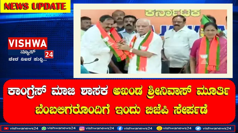 ಕಾಂಗ್ರೆಸ್ ಮಾಜಿ ಶಾಸಕ ಅಖಂಡ ಶ್ರೀನಿವಾಸ್ ಮೂರ್ತಿ ಬೆಂಬಲಿಗರೊಂದಿಗೆ ಇಂದು ಬಿಜೆಪಿ ಸೇರ್ಪಡೆ – Vishwanews24