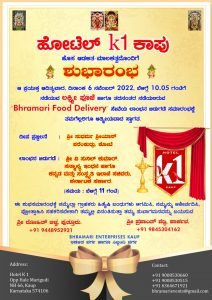 ನವೆಂಬರ್ 6 ಆದಿತ್ಯವಾರ ಬೆಳಿಗ್ಗೆ 10 ಗಂಟೆಗೆ ಲಕ್ಷ್ಮೀ ಪೂಜೆ ಮತ್ತು ಭ್ರಾಮರೀ ಫುಡ್ ಡೆಲಿವರಿ ಸೇವೆ ಲಾಂಛನ ಬಿಡುಗಡೆ ಕಾರ್ಯಕ್ರಮ ಜರಗಲಿದೆ.