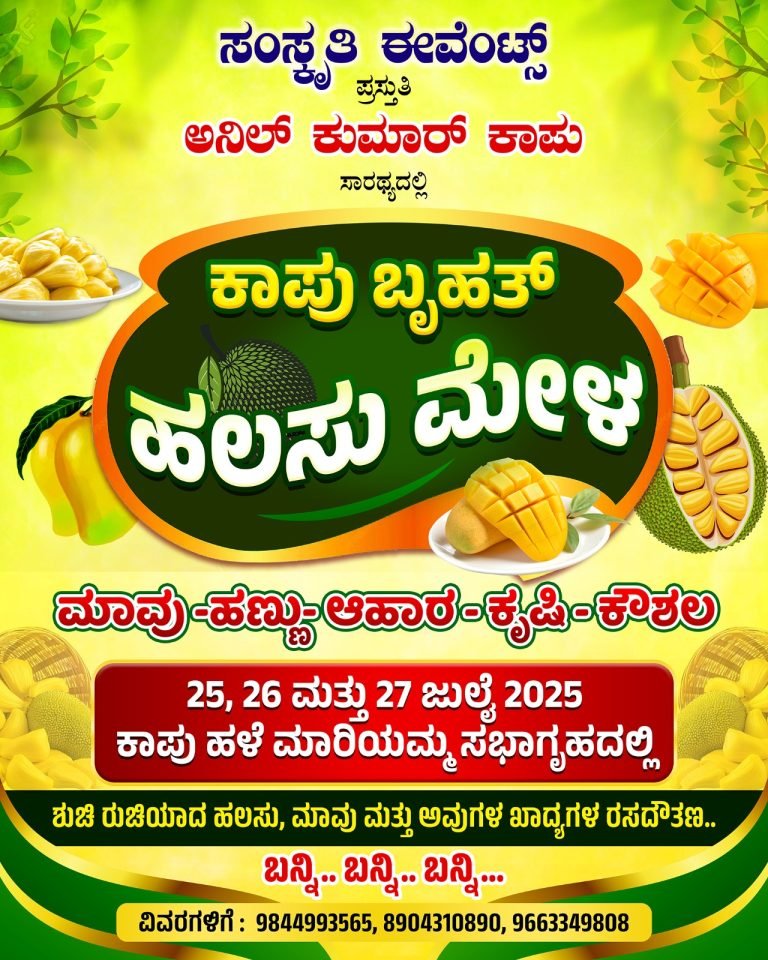 ಜುಲೈ 25, 26, 27 ರಂದು ಸಂಸ್ಕೃತಿ ಈವೆಂಟ್ಸ್ ಇವರು ಪ್ರಸ್ತುತ ಪಡಿಸುವ ಕಾಪು ಬೃಹತ್ ಹಲಸು ಮೇಳ : vishwanews24