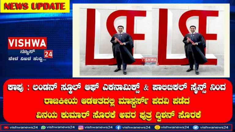 ಕಾಪು : ಲಂಡನ್ ಸ್ಕೂಲ್ ಆಫ್ ಎಕನಾಮಿಕ್ಸ್ & ಪಾಲಿಟಿಕಲ್ ಸೈನ್ಸ್ ನಿಂದ ರಾಜಕೀಯ ಆಡಳಿತದಲ್ಲಿ ಮಾಸ್ಟರ್ಸ್ ಪದವಿ ಪಡೆದ ವಿನಯ ಕುಮಾರ್ ಸೊರಕೆ ಅವರ ಪುತ್ರ ದ್ವಿಶನ್ ಸೊರಕೆ – vishwanews24