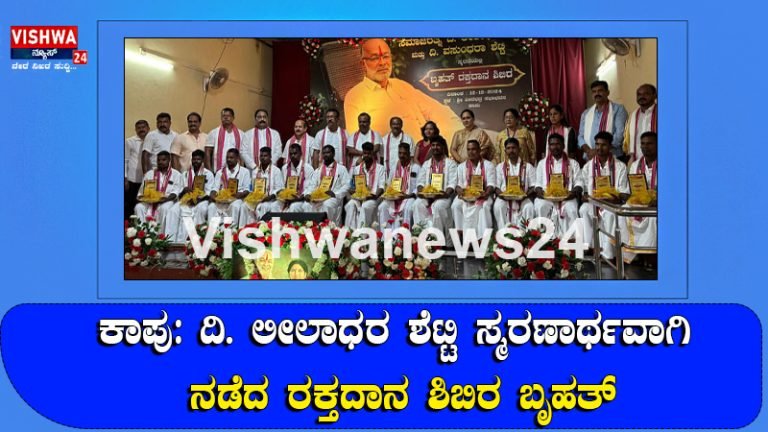 Share this on WhatsAppಕಾಪು: ದಿ. ಲೀಲಾಧರ ಶೆಟ್ಟಿ ಸ್ಮರಣಾರ್ಥವಾಗಿ ನಡೆದ ರಕ್ತದಾನ ಶಿಬಿರ ಬೃಹತ್ ಕಾಪು: ಸಮಾಜ ಸೇವಕ ದಿ. ಲೀಲಾಧರ ಶೆಟ್ಟಿ ಮತ್ತು ವಸುಂದರಾ ಶೆಟ್ಟಿ ಅವರ ಸ್ಮರಣಾರ್ಥ ಗುರುವಾರ ಕಾಪು ಶ್ರೀವೀರಭದ್ರ ಸಭಾಭವನದಲ್ಲಿ ರಕ್ತದಾನ ಶಿಬಿರ ನೆರವೇರಿತು. … Continue reading ಕಾಪು : ಲೀಲಾಧರ ಶೆಟ್ಟಿಯವರು ನಮ್ಮನ್ನು ಆಗಲಿ ವರ್ಷವಾದರೂ ಅವರು ಮಾಡಿದ ಸಮಾಜ ಸೇವೆ ನಿತ್ಯ ನಿರಂತರ : ಮನೋಹರ ಎಸ್ ಶೆಟ್ಟಿ – vishwanews24