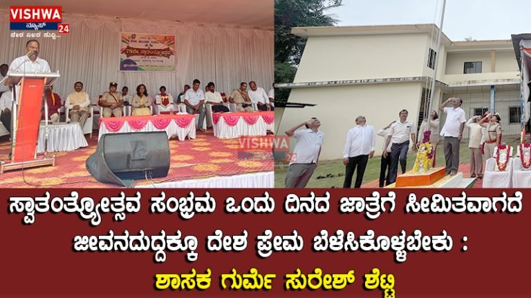 Share this on WhatsAppಕಾಪು : ಸ್ವಾತಂತ್ರ್ಯೋತ್ಸವ ಸಂಭ್ರಮ ಒಂದು ದಿನದ ಜಾತ್ರೆಗೆ ಸೀಮಿತವಾಗದೆ ಜೀವನದುದ್ದಕ್ಕೂ ದೇಶ ಪ್ರೇಮ ಬೆಳೆಸಿಕೊಳ್ಳಬೇಕು : ಶಾಸಕ ಗುರ್ಮೆ ಸುರೇಶ್ ಶೆಟ್ಟಿ ಕಾಪು : ಭಾರತದ ಸ್ವಾತಂತ್ರಕ್ಕಾಗಿ ಹೋರಾಡಿದ ಪೂರ್ವಜರಲ್ಲಿದ್ದ ಸ್ವದೇಶಾಭಿಮಾನದ ಕಿಚ್ಚು ಹಾಗು ಶ್ರದ್ದೆಯ ಹೋರಾ … Continue reading ಕಾಪು : ಸ್ವಾತಂತ್ರ್ಯೋತ್ಸವ ಸಂಭ್ರಮ ಒಂದು ದಿನದ ಜಾತ್ರೆಗೆ ಸೀಮಿತವಾಗದೆ ಜೀವನದುದ್ದಕ್ಕೂ ದೇಶ ಪ್ರೇಮ ಬೆಳೆಸಿಕೊಳ್ಳಬೇಕು : ಶಾಸಕ ಗುರ್ಮೆ ಸುರೇಶ್ ಶೆಟ್ಟಿ – vishwanews24
