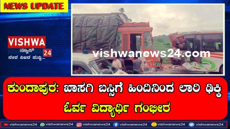 Share this on WhatsAppಕುಂದಾಪುರ: ಖಾಸಗಿ ಬಸ್ಸಿಗೆ ಹಿಂದಿನಿಂದ ಢಿಕ್ಕಿ ಹೊಡೆದ ಲಾರಿ – ಓರ್ವ ವಿದ್ಯಾರ್ಥಿ ಗಂಭೀರ ; ಹಲವರಿಗೆ ಗಾಯ ಕುಂದಾಪುರ: ಖಾಸಗಿ ಬಸ್ಸಿಗೆ ಲಾರಿಯೊಂದು ಹಿಂದಿನಿಂದ ರಭಸವಾಗಿ ಬಂದು ಢಿಕ್ಕಿ ಹೊಡೆದ ಘಟನೆ ರಾಷ್ಟ್ರೀಯ ಹೆದ್ದಾರಿ 66 … Continue reading ಕುಂದಾಪುರ: ಖಾಸಗಿ ಬಸ್ಸಿಗೆ ಹಿಂದಿನಿಂದ ಢಿಕ್ಕಿ ಹೊಡೆದ ಲಾರಿ – ಓರ್ವ ವಿದ್ಯಾರ್ಥಿ ಗಂಭೀರ ; ಹಲವರಿಗೆ ಗಾಯ – vishwanews24