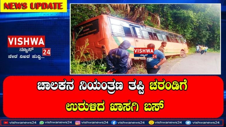 ಕುಂದಾಪುರ: ಖಾಸಗಿ ಬಸ್ಸೊಂದು ಚಾಲಕನ ನಿಯಂತ್ರಣ ತಪ್ಪಿ ಚರಂಡಿಗೆ ಉರುಳಿದ ಘಟನೆ ಕೊಲ್ಲೂರು ಸಮೀಪದ ನಾಗೋಡಿ ಘಾಟಿ ಬಳಿ ಸೋಮವಾರ ನಡೆದಿದೆ.