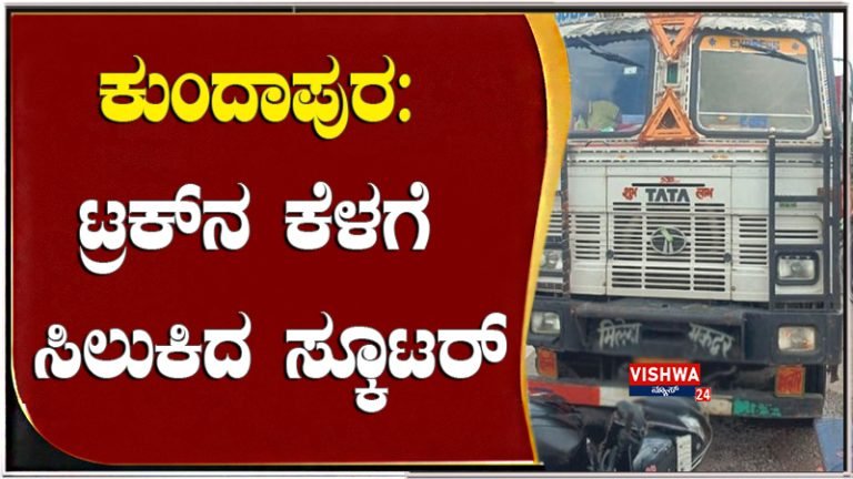 ಕುಂದಾಪುರ:ಕುಂದಾಪುರ-ಬೈಂದೂರು ರಾಷ್ಟ್ರೀಯ ಹೆದ್ದಾರಿ 66ರ ಸಂಗಮ ಜಂಕ್ಷನ್ ಬಳಿ ಭಾನುವಾರ ಬೆಳಗ್ಗೆ ಟ್ರಕ್ನ ಕೆಳಗೆ ಸ್ಕೂಟರ್ ಉರುಳಿ ಬಿದ್ದಿದೆ. ಅದೃಷ್ಟವಶಾತ್ ಸ್ಕೂಟರ್ನಲ್ಲಿ ಪ್ರಯಾಣಿಸುತ್ತಿದ್ದ ತಾಯಿ ಮತ್ತು ಮಗಳಿಗೆ ಬಿದ್ದು ಸಣ್ಣಪುಟ್ಟ ಗಾಯಗಳಾಗಿವೆ.