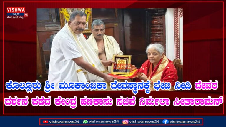 ಕೊಲ್ಲೂರು: ಕೇಂದ್ರ ಹಣಕಾಸು ಸಚಿವೆ ನಿರ್ಮಲಾ ಸೀತಾರಾಮನ್ ಅವರು ಮಂಗಳವಾರ ಬೆಳಿಗ್ಗೆ ಕೊಲ್ಲೂರು ಶ್ರೀ ಮೂಕಾಂಬಿಕಾ ದೇವಸ್ಥಾನಕ್ಕೆ ಭೇಟಿ ನೀಡಿ ದೇವರ ದರ್ಶನ ಪಡೆದರು.