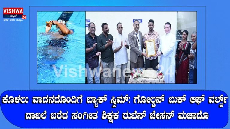 Share this on WhatsAppಕೊಳಲು ವಾದನದೊಂದಿಗೆ ಬ್ಯಾಕ್ ಸ್ವಿಮ್: ಗೋಲ್ಡನ್ ಬುಕ್ ಆಫ್ ವರ್ಲ್ಡ್ ದಾಖಲೆ ಬರೆದ ಸಂಗೀತ ಶಿಕ್ಷಕ ರುಬೆನ್ ಜೇಸನ್ ಮಚಾದೊ ಮಂಗಳೂರು: ಬಹುಮುಖ ಪ್ರತಿಭೆಯ ಸಂಗೀತ ಶಿಕ್ಷಕ ರುಬೆನ್ ಜೇಸನ್ ಮಚಾದೊ ಅವರು ಬುಧವಾರ ಬೆಳಗ್ಗೆ ನಗರದ … Continue reading ಕೊಳಲು ವಾದನದೊಂದಿಗೆ ಬ್ಯಾಕ್ ಸ್ವಿಮ್: ಗೋಲ್ಡನ್ ಬುಕ್ ಆಫ್ ವರ್ಲ್ಡ್ ದಾಖಲೆ ಬರೆದ ಸಂಗೀತ ಶಿಕ್ಷಕ ರುಬೆನ್ ಜೇಸನ್ ಮಚಾದೊ – vishwanews24