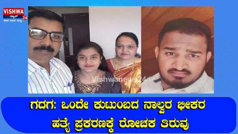 Share this on WhatsAppಗದಗ: ಒಂದೇ ಕುಟುಂಬದ ನಾಲ್ವರ ಭೀಕರ ಹತ್ಯೆ ಪ್ರಕರಣಕ್ಕೆ ರೋಚಕ ತಿರುವು – ಹಿರಿಮಗನಿಂದಲೇ ಕೊಲೆಗೆ ಸುಪಾರಿ ಗದಗ: ನಗರಸಭೆ ಉಪಾಧ್ಯಕ್ಷೆ ಪುತ್ರ ಸೇರಿದಂತೆ ಒಂದೇ ಕುಟುಂಬದ ನಾಲ್ವರನ್ನು ಮಾರಕಾಸ್ತ್ರಗಳಿಂದ ಕೊಚ್ಚಿ ಬರ್ಬರವಾಗಿ ಕೊಲೆ ಮಾಡಿರುವ ಘಟನೆ … Continue reading ಗದಗ: ಒಂದೇ ಕುಟುಂಬದ ನಾಲ್ವರ ಭೀಕರ ಹತ್ಯೆ ಪ್ರಕರಣಕ್ಕೆ ರೋಚಕ ತಿರುವು – ಹಿರಿಮಗನಿಂದಲೇ ಕೊಲೆಗೆ ಸುಪಾರಿ ..!- Vishwanews24