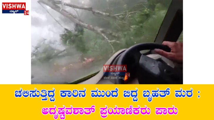 ಚಲಿಸುತ್ತಿದ್ದ ಕಾರಿನ ಮುಂದೆ ಬಿದ್ದ ಬೃಹತ್ ಮರ ; ಅದೃಷ್ಟವಶಾತ್ ಪ್ರಯಾಣಿಕರು ಪಾರು – vishwanews24