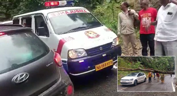ಚಾರ್ಮಾಡಿ ಘಾಟಿಯಲ್ಲಿ ಮರಬಿದ್ದು ಸಂಚಾರಕ್ಕೆ ಅಡ್ಡಿ: ಟ್ರಾಫಿಕ್ ಜಾಮ್ ನಲ್ಲಿ ಸಿಲುಕಿದ ಆಂಬುಲೆನ್ಸ್