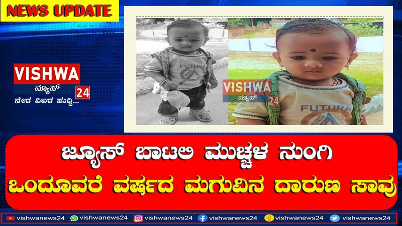 ಜ್ಯೂಸ್ ಬಾಟಲಿ ಮುಚ್ಚಳ ನುಂಗಿದ ಒಂದೂವರೆ ವರ್ಷದ ಮಗು ; ಉಸಿರಾಟ ಸಮಸ್ಯೆಯಿಂದ ಸಾವು – vishwanews24