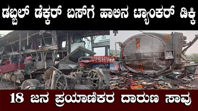 ಡಬ್ಬಲ್ ಡೆಕ್ಕರ್ ಬಸ್ಗೆ ಹಾಲಿನ ಟ್ಯಾಂಕರ್ ಡಿಕ್ಕಿ : 18 ಜನ ಪ್ರಯಾಣಿಕರ ದಾರುಣ ಸಾವು – vishwanews24