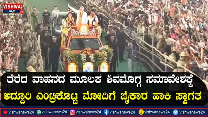 ತೆರೆದ ವಾಹನದ ಮೂಲಕ ಶಿವಮೊಗ್ಗ ಸಮಾವೇಶಕ್ಕೆ ಅದ್ದೂರಿಯಾಗಿ ಎಂಟ್ರಿಕೊಟ್ಟಿ ಮೋದಿಗೆ ಜೈಕಾರ ಹಾಕಿ ಸ್ವಾಗತ – Vishwanews24