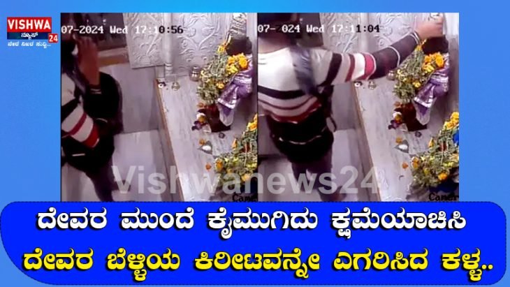ದೇವರ ಮುಂದೆ ಕೈಮುಗಿದು ಬೆಳ್ಳಿಯ ಕಿರೀಟವನ್ನೇ ಎಗರಿಸಿದ ಕಳ್ಳ.. vishwanews24