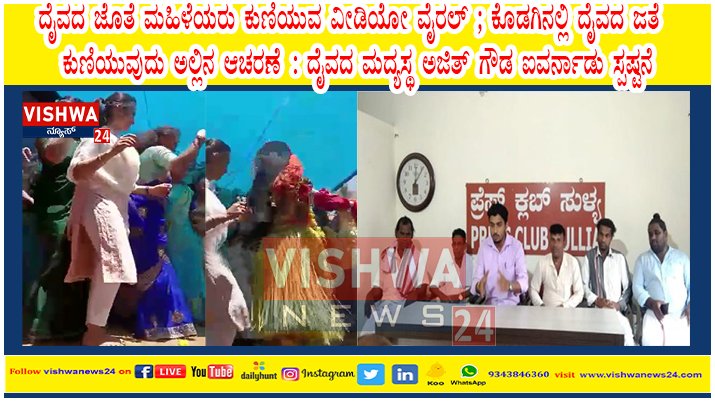ದೈವದ ಜೊತೆ ಮಹಿಳೆಯರು ಕುಣಿಯುವ ವೀಡಿಯೋ ವೈರಲ್ ; ಕೊಡಗಿನಲ್ಲಿ ದೈವದ ಜತೆ ಕುಣಿಯುವುದು ಅಲ್ಲಿನ ಆಚರಣೆ : ದೈವದ ಮದ್ಯಸ್ಥ ಅಜಿತ್ ಗೌಡ ಐವರ್ನಾಡು ಸ್ಪಷ್ಟನೆ – Vishwanews24