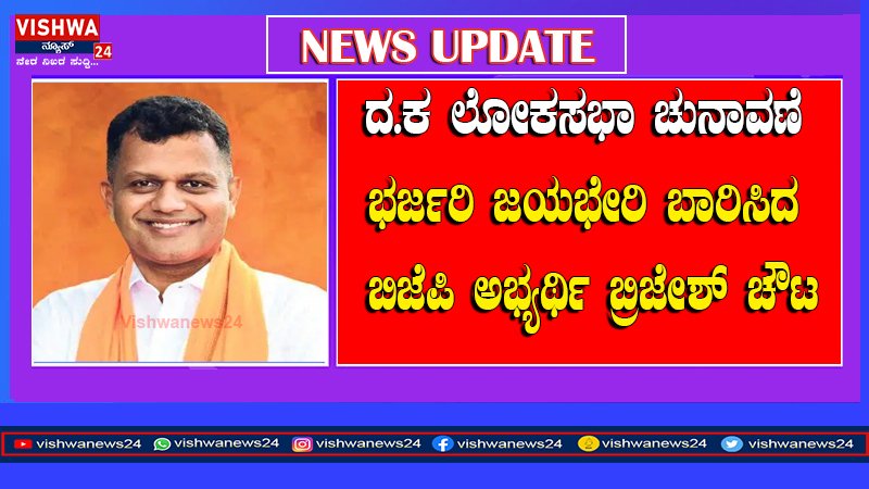 ದ.ಕ ಲೋಕಸಭಾ ಚುನಾವಣೆ : ಭರ್ಜರಿ ಗೆಲುವು ಸಾಧಿಸಿದ ಬಿಜೆಪಿ ಅಭ್ಯರ್ಥಿ ಬ್ರಿಜೇಶ್ ಚೌಟ -vishwanews24 June 4, 2024 Vishwa News 24 Featured, ದಕ್ಷಿಣ ಕನ್ನಡ Share this on WhatsAppದ.ಕ ಲೋಕಸಭಾ ಚುನಾವಣೆ : ಭರ್ಜರಿ ಗೆಲುವು ಸಾಧಿಸಿದ ಬಿಜೆಪಿ ಅಭ್ಯರ್ಥಿ ಬ್ರಿಜೇಶ್ ಚೌಟ