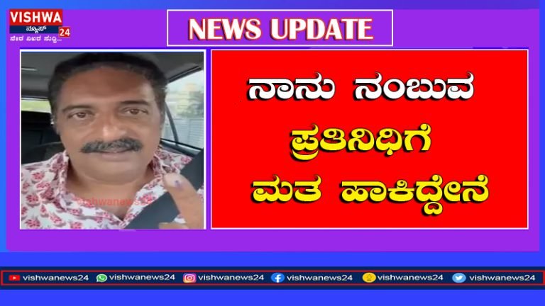 ಬೆಂಗಳೂರು: ನಟ ಪ್ರಕಾಶ್ ರಾಜ್ ಬೆಂಗಳೂರಿನ ಮತಗಟ್ಟೆಯೊಂದರಲ್ಲಿ ಇಂದು ತಮ್ಮ ಮತ ಚಲಾಯಿಸಿದ್ದಾರೆ.