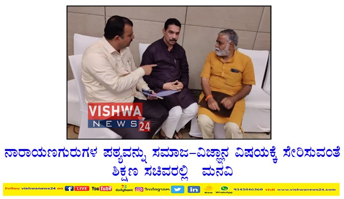 ನಾರಾಯಣಗುರುಗಳ ಪಠ್ಯವನ್ನು ಸಮಾಜ-ವಿಜ್ಞಾನ ವಿಷಯಕ್ಕೆ ಸೇರಿಸುವಂತೆ  ಶಿಕ್ಷಣ ಸಚಿವರಲ್ಲಿ  ಮನವಿ